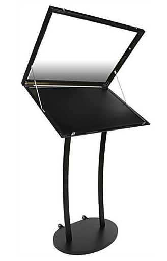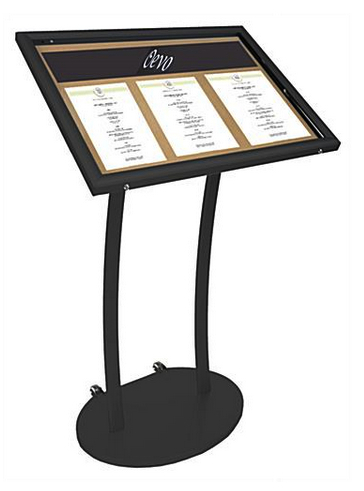 Podio portamenu de aluminio, con iluminacion interior leds, con tapa con llave,