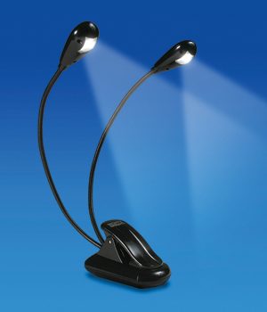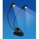 Lampara para podium, de led dos cabezas con pinza, muy practica para el orador, permite colocarla donde mejor posicón tenga la luz en su documeto, es de pilas duración de pilas 10 dias de uso constante