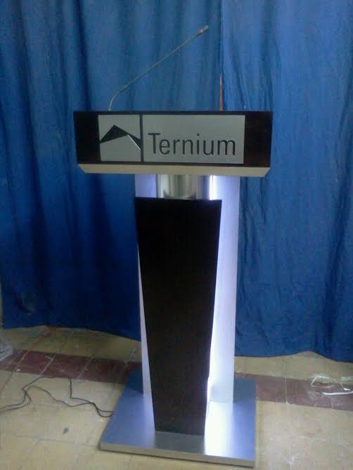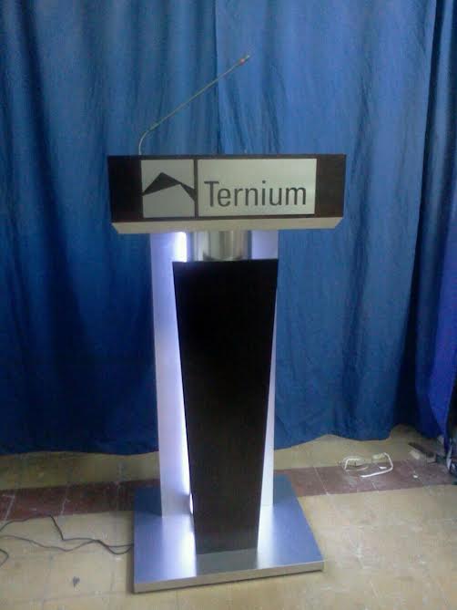 PODIUM PRESIDENCIAL 3, FABRICADO EN MADERA DE PINO, ILUMINACION CON LEDS EN LOS LATERALES,