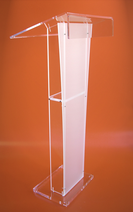 Podium de orador fabricado en Acrilico de alta calidad. . Dos superficies para personalizar.