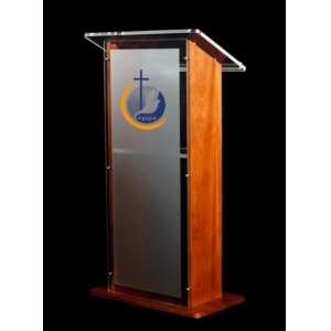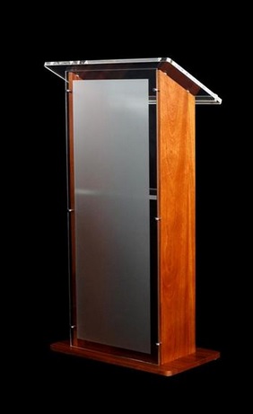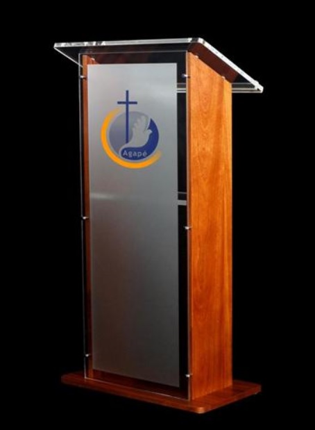 Podium fabricado en Acrilico FRONTAL 6 mm y madera BanaK, color al gusto del cliente