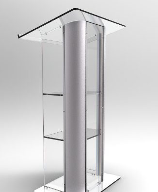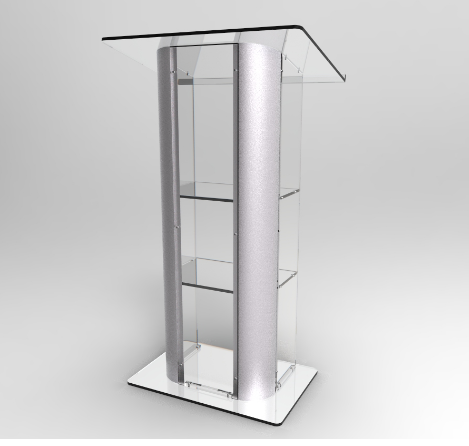 PODIUM ACRILICO 12 MM, ALUMINIO EN LATERALES, BASE, PALETA Y LATERALES ACRILICO 12 MM