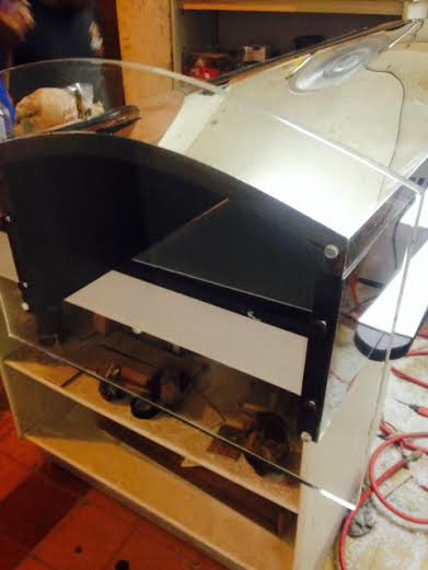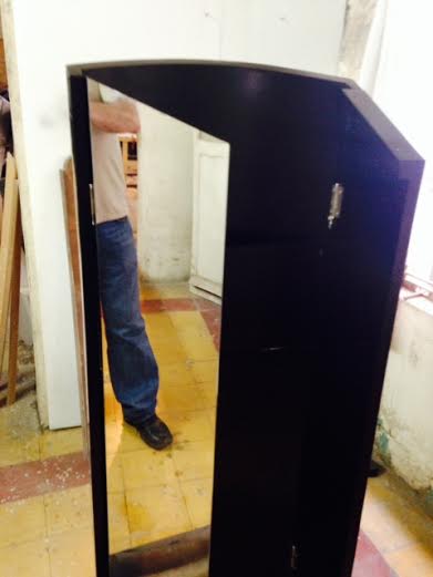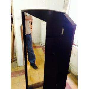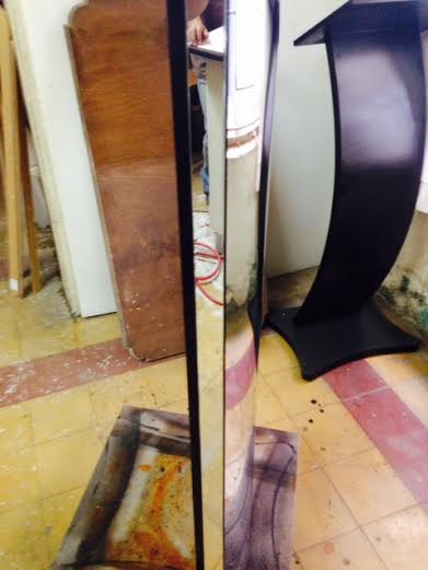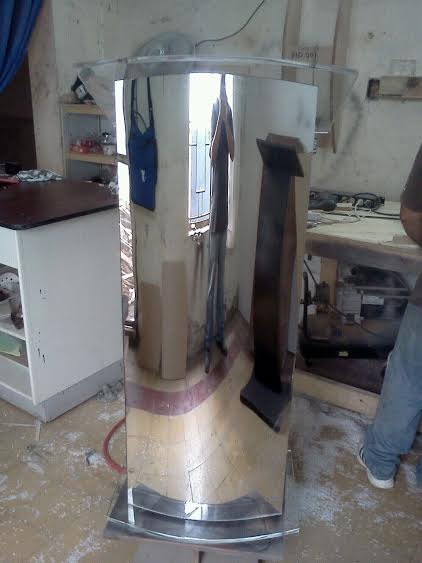 Podium curvo plata portatil, fabricado en acrilico 12 mm, acrilico espejo 3 mm, madera pino