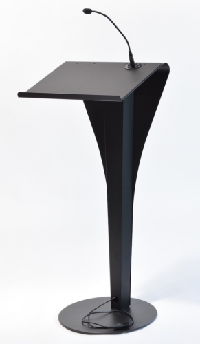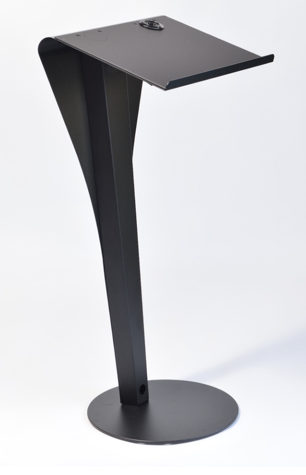 PODIUM CURVO DE ACERO, FABRICADO CON PLACA DE ACERO, CORTE ESPECIAL, BASE DE ACERO DE 1/4, PERFORACIONES PARA ,MICROFONOS