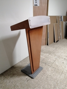 Podium modelo PV, fabricado en madera laminada y acrilico