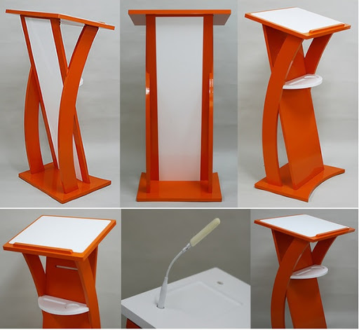 Podium fabricado en madera y acrilico,