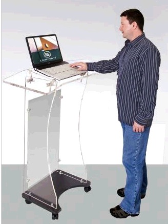 Estación de trabajo de acrílico muy versátil o Podium con una plataforma de trabajo adaptable, cómodo para trabajar frente a un auditorio o en una sala de capacitación