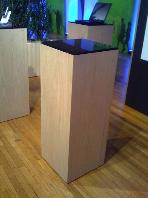 Pedestal fabricado en madera de cedro, con repisa de acrilico negro 10 mm