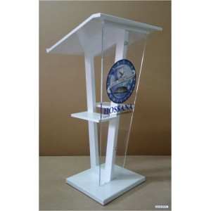 Podium de Acrilico Estilizado, esbelto en sus laterales, fornta de acrilico blanco triangular